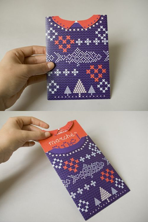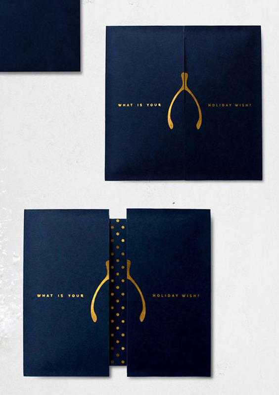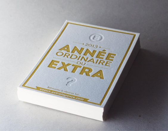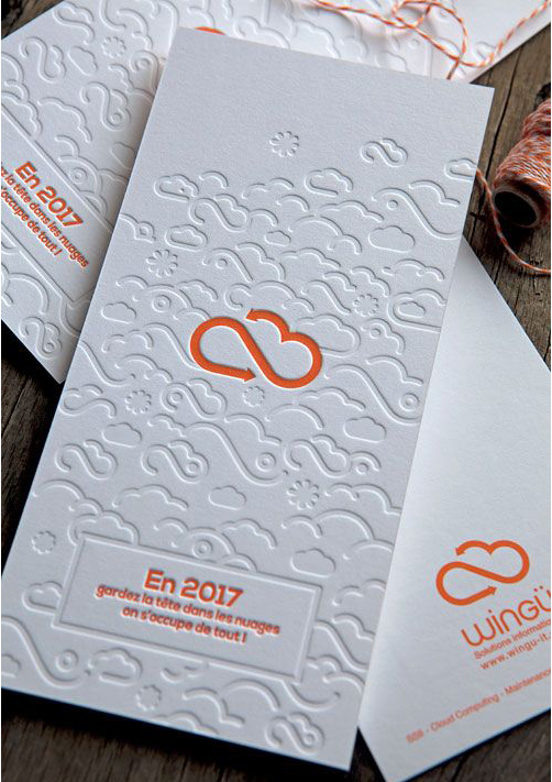 Sortez du traditionnel format paysage. S’il est pratique parce qu’il rentre parfaitement dans les enveloppes, faites fi de ces considérations matérielles et osez le format carré. Les plus créatifs (et ceux qui ont le plus de budget) tenteront des cartes pop-up ou des façonnages particuliers (gaufrage, vernis sélectif, etc). Vous aurez ainsi plus de chance de marquer les esprits de vos clients au milieu de la multitude de cartes qu’ils reçoivent.