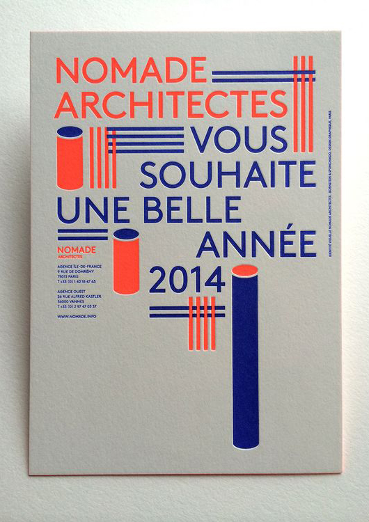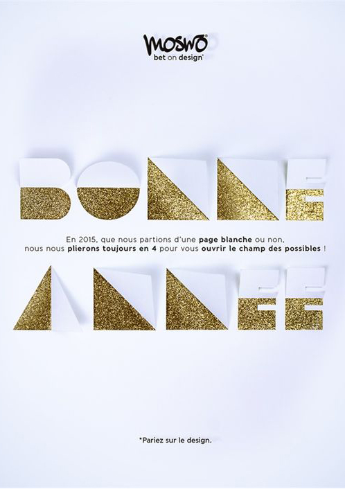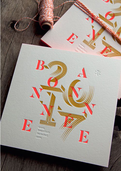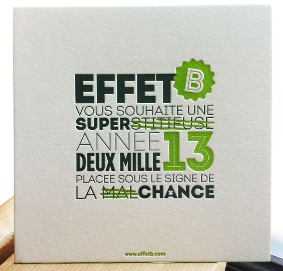 Le domaine dans lequel vous travaillez peut servir de matière première dans la création de votre visuel de bonne année. Jouer avec les clichés, vous pouvez aussi utiliser la formule gagnante de la citation, tant qu’elle est choisie avec soin et en lien avec votre activité. Moyennant un travail typographique soigné et un choix pertinent de la palette de couleur, l’effet est garanti.