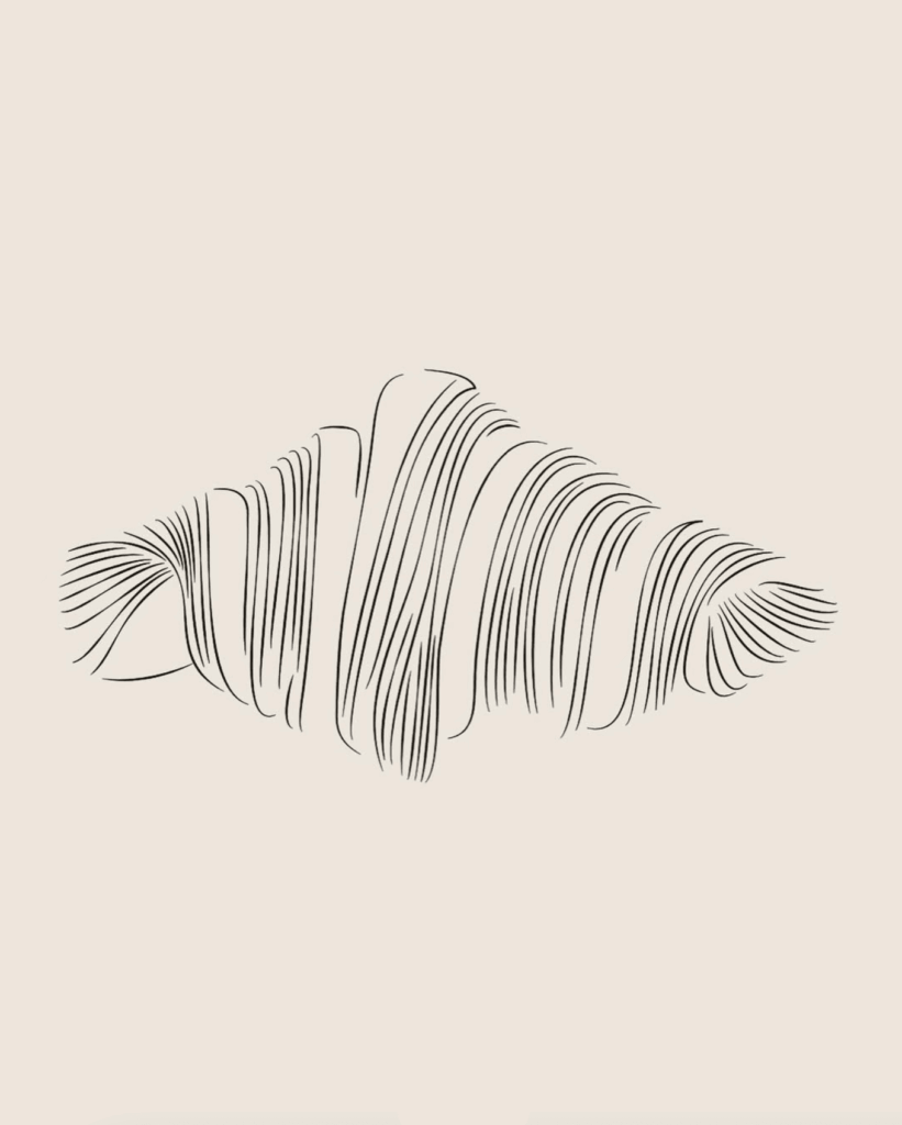 C’est aussi la représentation du feuilletage et de ses couches superposées, leur zone de génie, le coeur de leur savoir-faire et l’une des raisons pour laquelle leurs produits sont reconnus et primés. Il symbolise alors le geste de l’artisan boulanger et leur grande technicité et par extension, incarne l’idée que tout est frais et fait maison dans leurs boulangeries.